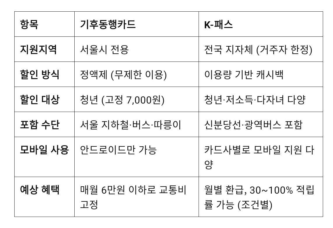 4. K-패스와 기후동행카드의 정책적 차이점 (자세히 보기)